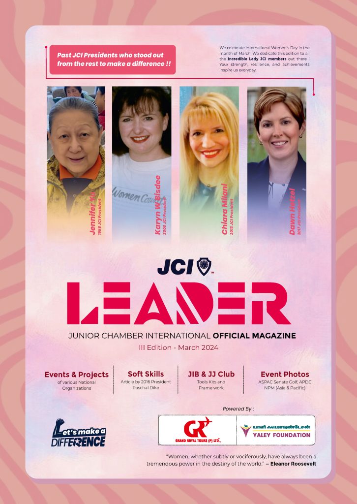 Explore past editions to revisit feature stories, interviews, and global updates that continue to inspire action. Whether you're looking for insights, best practices, or a deeper understanding of JCI’s global footprint, our back issues offer a valuable archive of the organization’s journey—one page at a time.